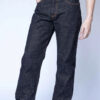 Jeans made from 21oz Broken twill, Slubby, Unsanforized fabric. The character of the denim fabric woven on a narrow loom with a traditional selvage, 21oz weight with a Broken Twill weave structure uses Slubby spun yarn with uneven yarn sizes, dyed in dark, deep shades for beautiful fade dimensions. It comes in the form of an Unsanforized fabric with a high shrinkage rate but will not twist as a result of the alternating left/right/left weave structure, also known as Broken Twill. The fabric has a rough texture and a distinct fabric pattern.