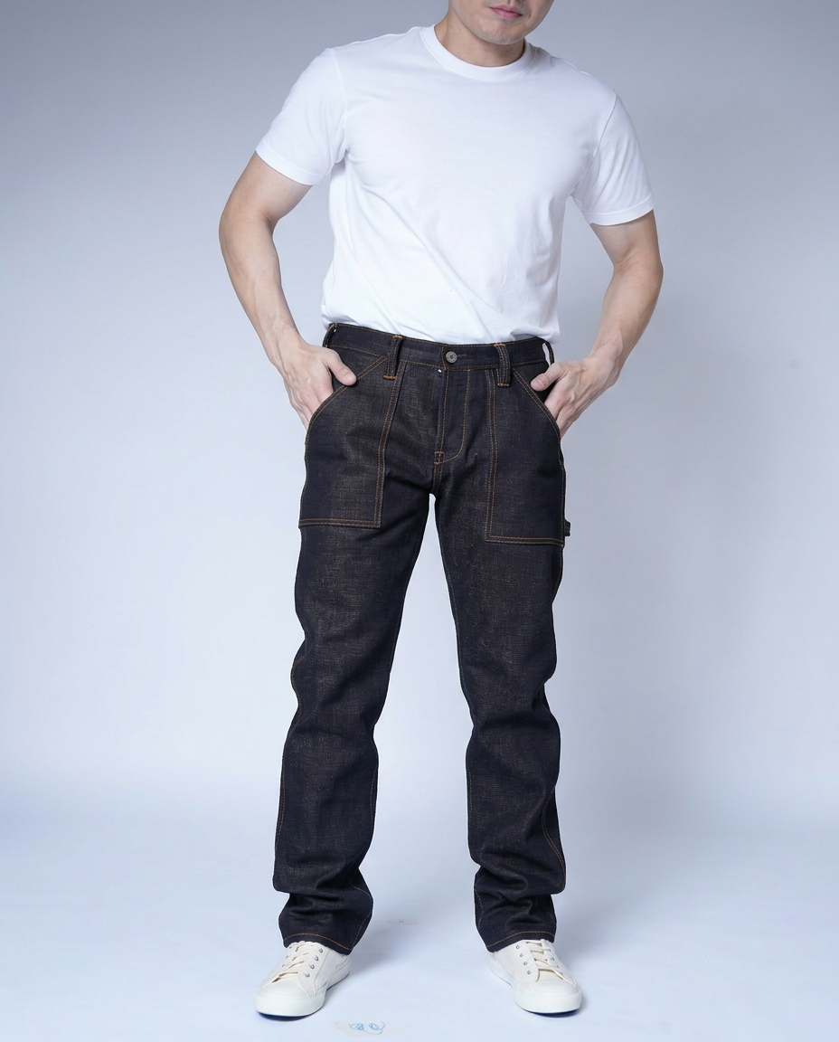 21 Oz broken twill slubby un-sanforized, Indigo x black,
