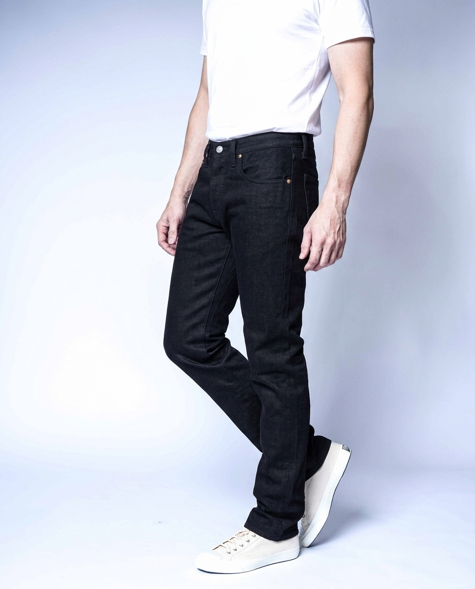 These jeans are made from 13.4 oz twill fabric, deeply dyed black in both the warp and weft. We use cotton sourced from Burkina Faso in Africa, known for its soft fibers and comfortable feel. The fabric is woven on traditional narrow shuttle looms from Japan and features a selvedge edge in orange, yellow, and green—reflecting the colors of the Burkina Faso national flag.