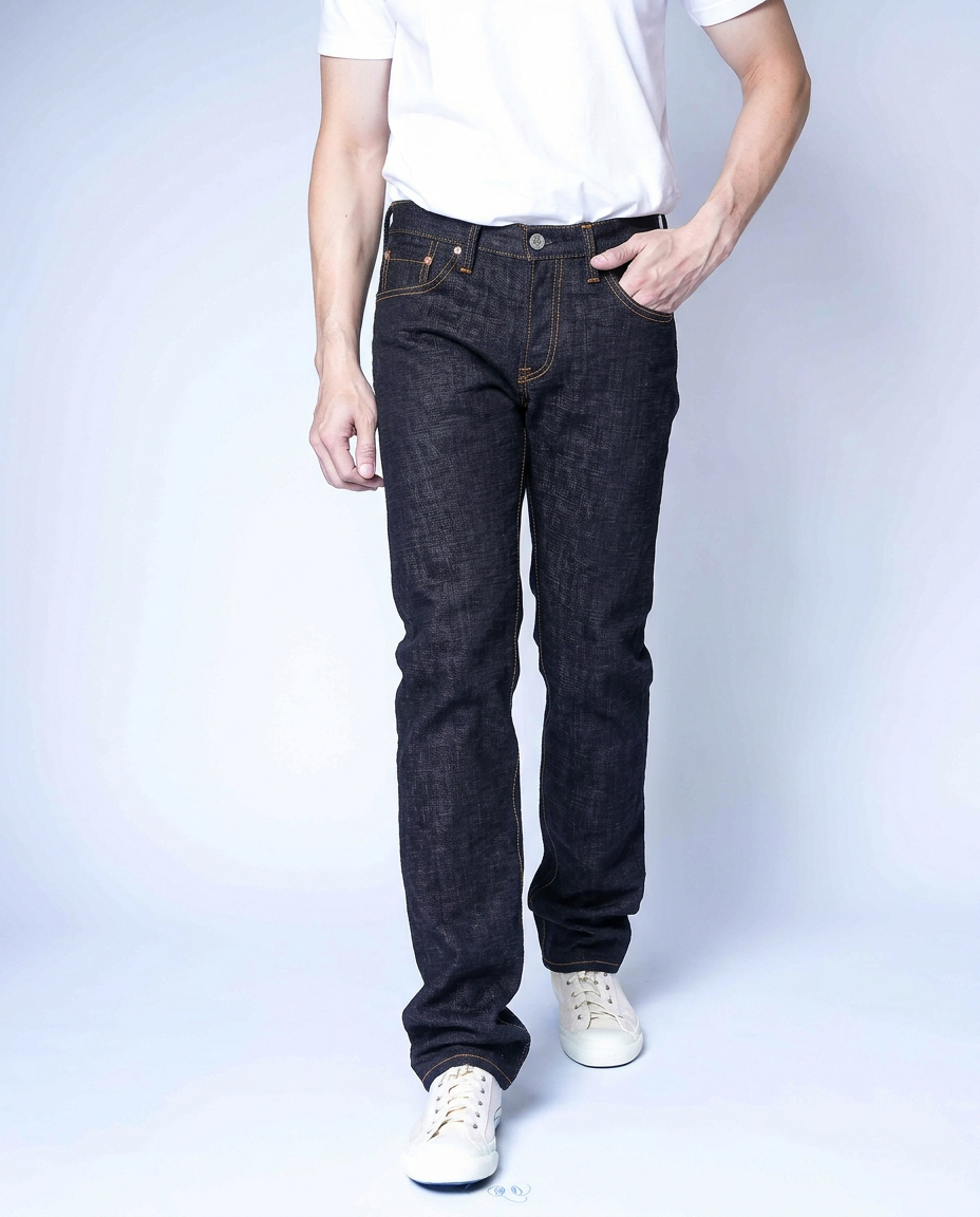 21 Oz broken twill slubby un-sanforized, Indigo x black,
