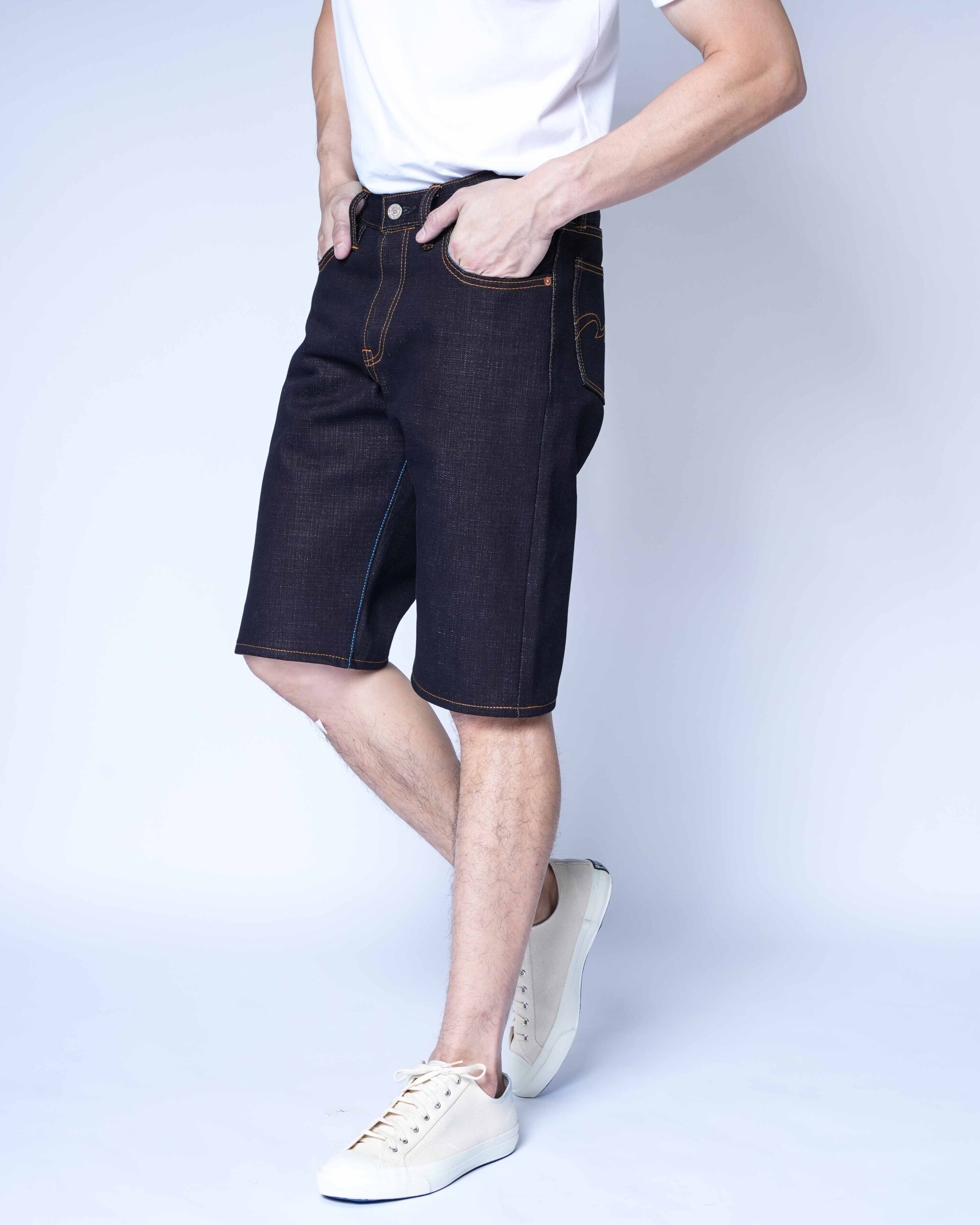 Color : Indigo rope-dyed warp, white weft