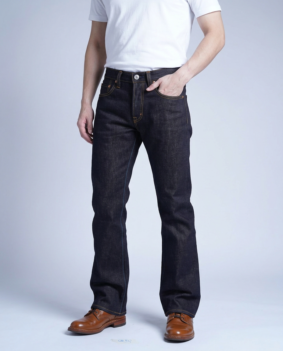 23oz denim fabric with mud-colored weft yarn, an extension of the success of the 22MD fabric code, which is popular both in Thailand and abroad. The fabric is thick, dense, and has a unique shade. The mud-colored shade of the weft yarn makes the color of the jeans when old have a shade called a rust-colored fade, old and rough, giving the feeling of wanting to wear it and go out and play in the mud right away.
